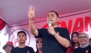 Saat turun dari kendaraannya yang terparkir sekitar 300 meter dari panggung, Eri Cahyadi sudah dicegat oleh pendukungnya, dengan berebut berjabat tangan serta meminta untuk berfoto bersama. Minggu (03/10/2024)