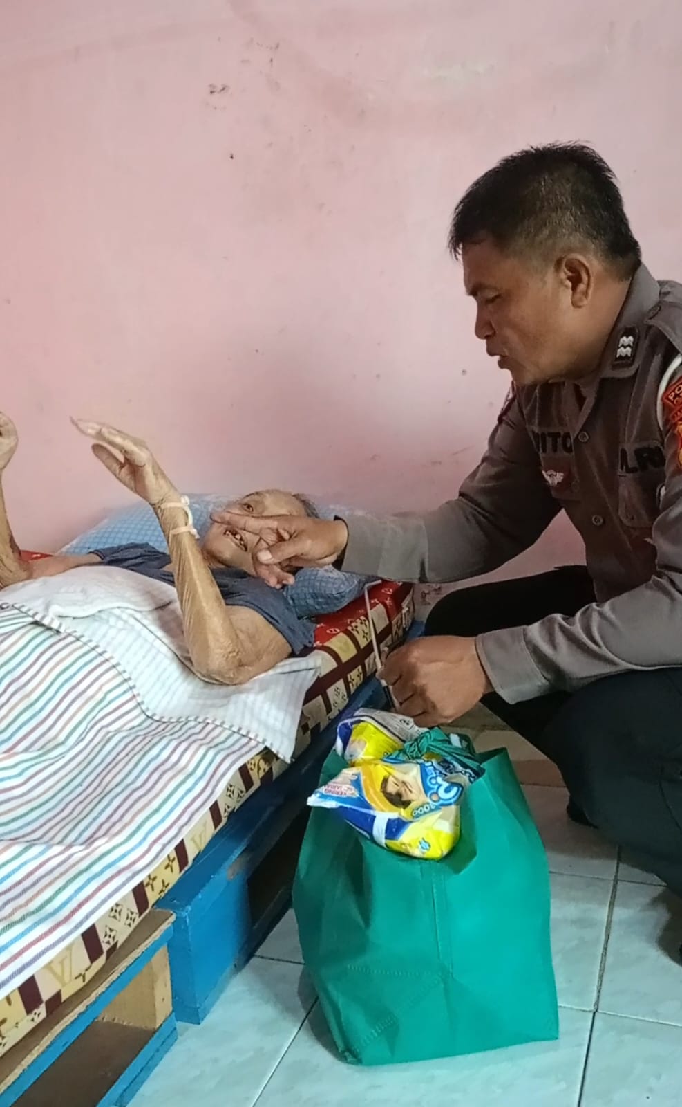 Aiptu Suwito mengunjungi kediaman Bu Saidah, seorang lansia yang telah terbaring di tempat tidur selama sembilan tahun akibat penyakit kronis. Dalam kunjungan tersebut, ia membawa bantuan berupa sembako sebagai wujud empati dan kepedulian terhadap kondisi Bu Saidah yang memprihatinkan.