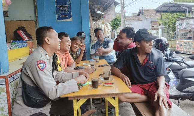 Bripka Eko Iman S, yang merupakan Bhabinkamtibmas Polsek Dukuh Pakis wilayah Kelurahan Pradah Kalikendal melaksanakan giat sambang warga binaannya sambil ngopi santai di Warkop Cak Taram RW 02 Kawal Kalikendal.