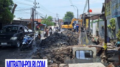 Saat bagian depan truk hampir sampai jalan raya, dari arah Stasiun Indro melaju kereta commuter line Jenggala.