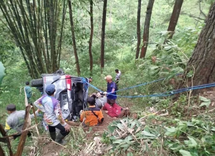 Peristiwa nahas yang dialami mobil dengan seri pelat nomor L ini terjadi sekitar pukul 15.00. Ketika itu, mobil berwarna metalik ini sedang melaju dari arah Batu menuju Pacet. ’’Mobilnya masuk jurang itu sekitar pukul 15.00,’’ ujar Made Zakaria, salah seorang relawan.