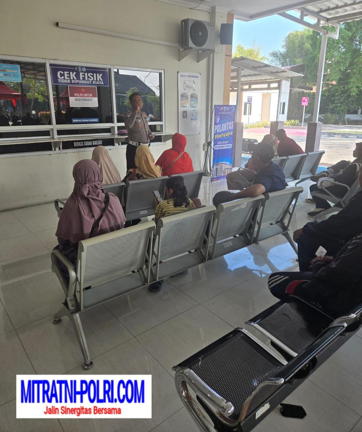 Melalui program unggulan bertajuk “Polantas Menyapa”, petugas pelayanan di Kantor Bersama (KB) Samsat Gresik memberikan edukasi dan informasi terkini kepada masyarakat mengenai tata cara pengurusan administrasi kendaraan bermotor.