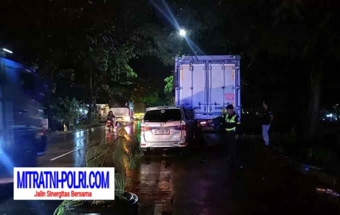 Karena jarak sudah dekat, mobil tersebut menabrak bagian belakang truk.