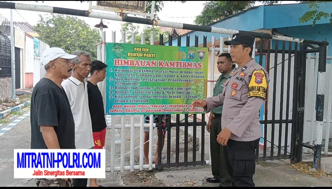 Bhabinkamtibmas & Babinsa Pasang Spanduk Kamtibmas di Dukuh Kupang Barat XI, Kapolsek Dukuh Pakis Tekankan Pentingnya Kewaspadaan Warga
