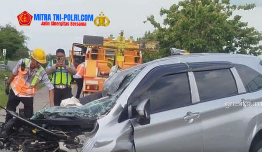 Mobil Toyota Avanza yang tengah melaju di jalan Tol Jombang-Mojokerto (Jomo) dari arah Nganjuk ke Surabaya, menabrak truk muatan besi baja yang melaju di depannya, Rabu (7/1/2026).