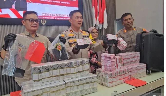 Kepolisian Resort Trenggalek Jawa Timur mengungkap penanganan kasus penipuan modus pencairan dana fiktif yang merugikan warga Desa Krandegan, Kecamatan Gandusari senilai Rp150 juta.