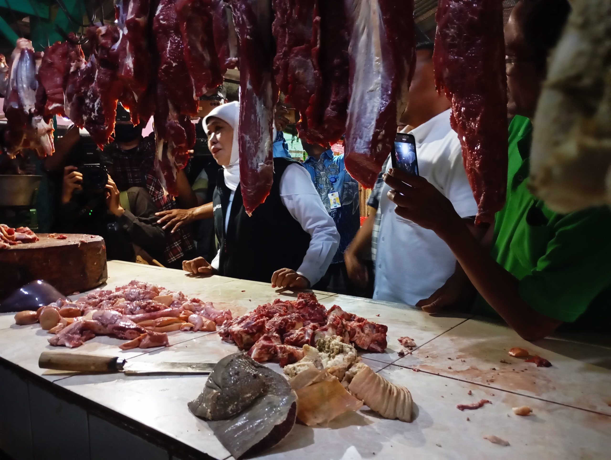 Khofifah meninjau sejumlah lapak pedagang dan berdialog langsung terkait harga komoditas utama. Ia menyampaikan bahwa kenaikan harga menjelang puasa merupakan pola yang kerap terjadi akibat meningkatnya permintaan masyarakat.